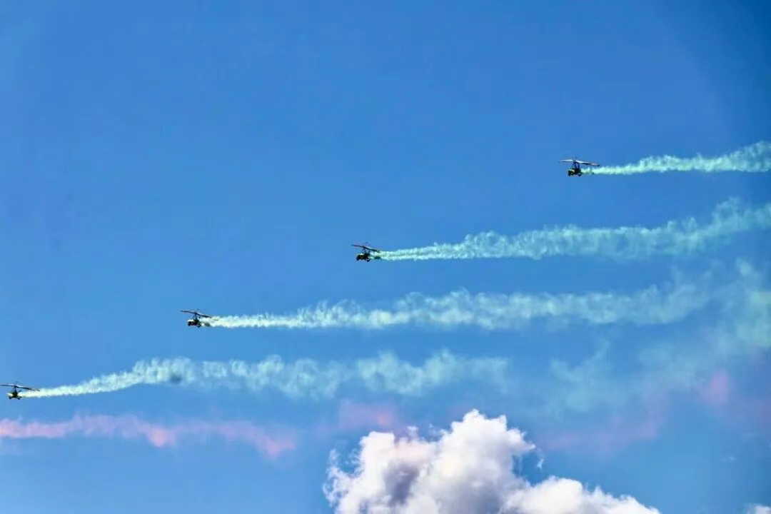 在第35届全区草原那达慕的沸腾现场,数架无人机与轻型飞机组成的编队掠过蓝天,动力伞在空中划出绚丽弧线,固定翼轻型飞机直冲云霄,不同飞行器凭借独特优势协同表演,生动展示了传统盛会与前沿科技的完美融合,标志着锡盟的文旅产业正在开辟一片全新的“低空”蓝海。